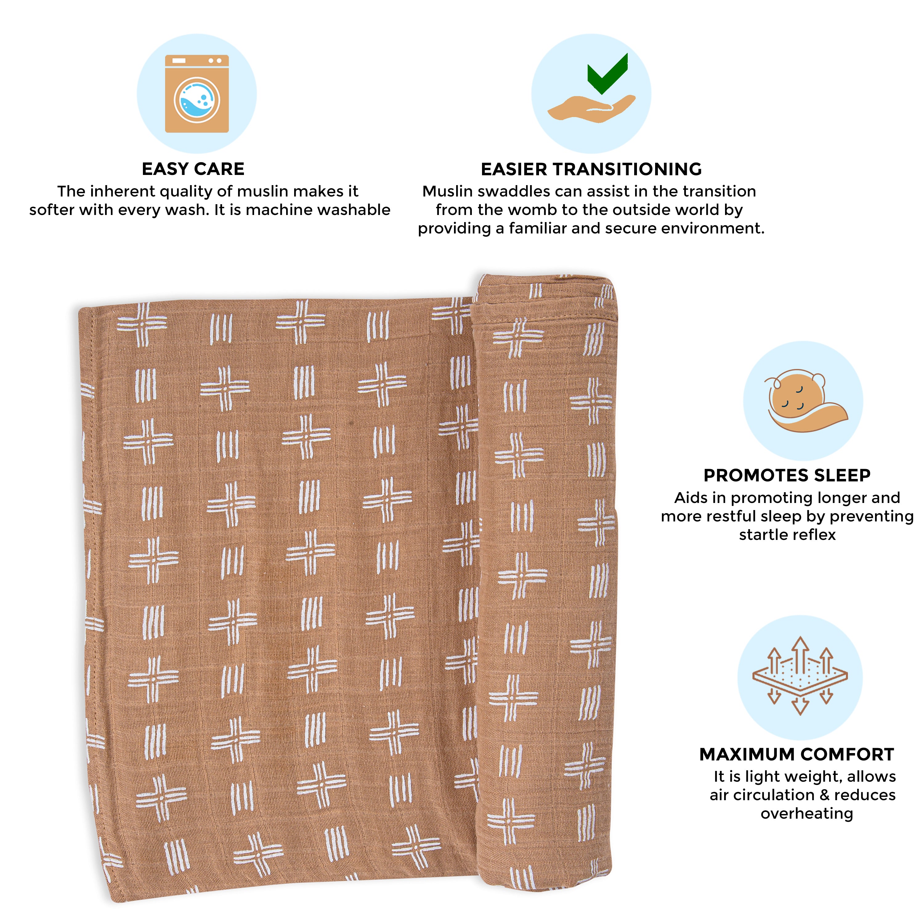 - Crafted with 100% cotton muslin, our swaddle is both light and breathable, ensuring optimal comfort for your baby. The hypoallergenic and soft material ensures a gentle touch, ensuring the safety of your baby's sensitive skin